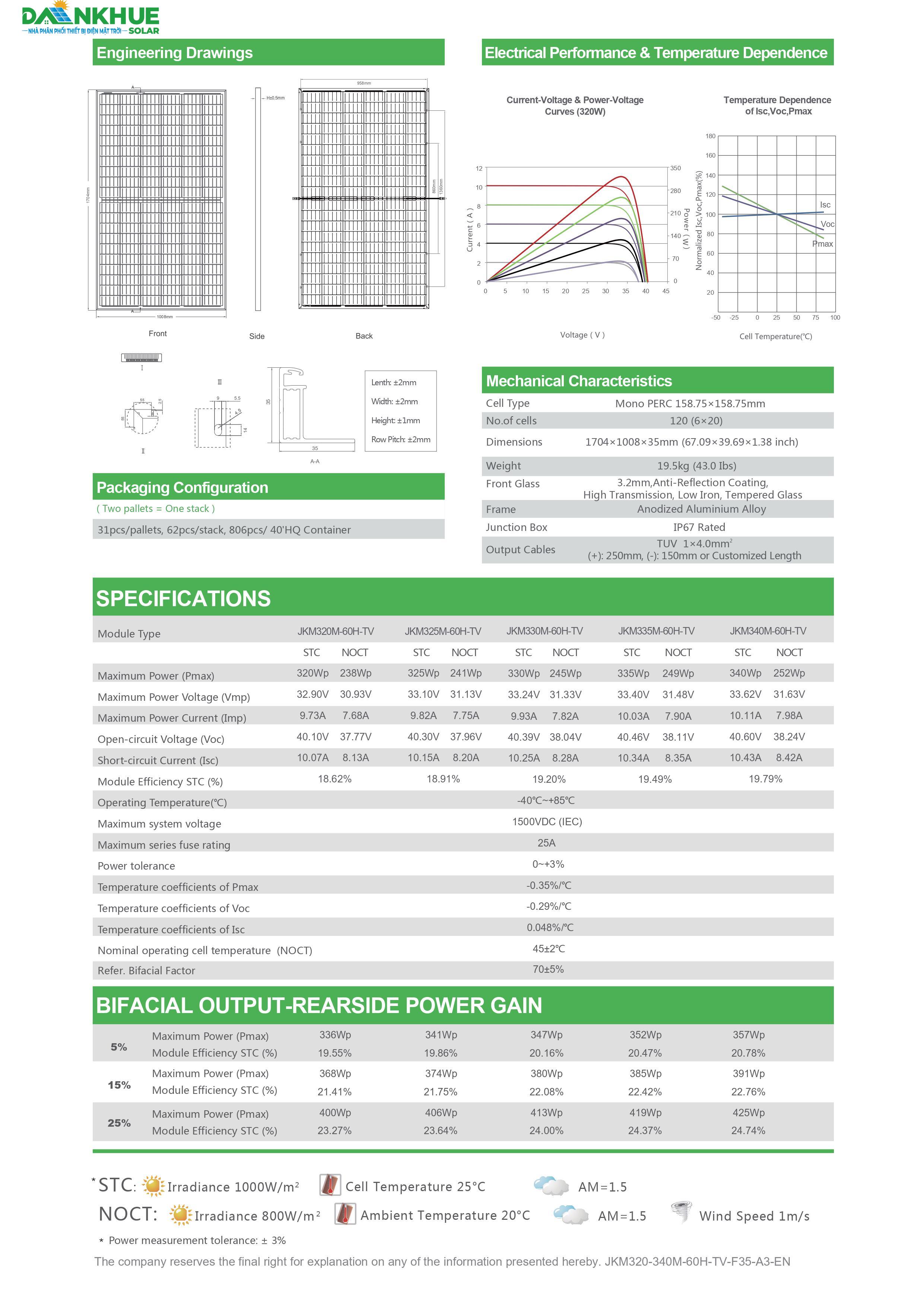 Loại Model: JKM320M-60H-TV JKM325M-60H-TV JKM330M-60H-TV JKM335M-60H-TV JKM340M-60H-TV