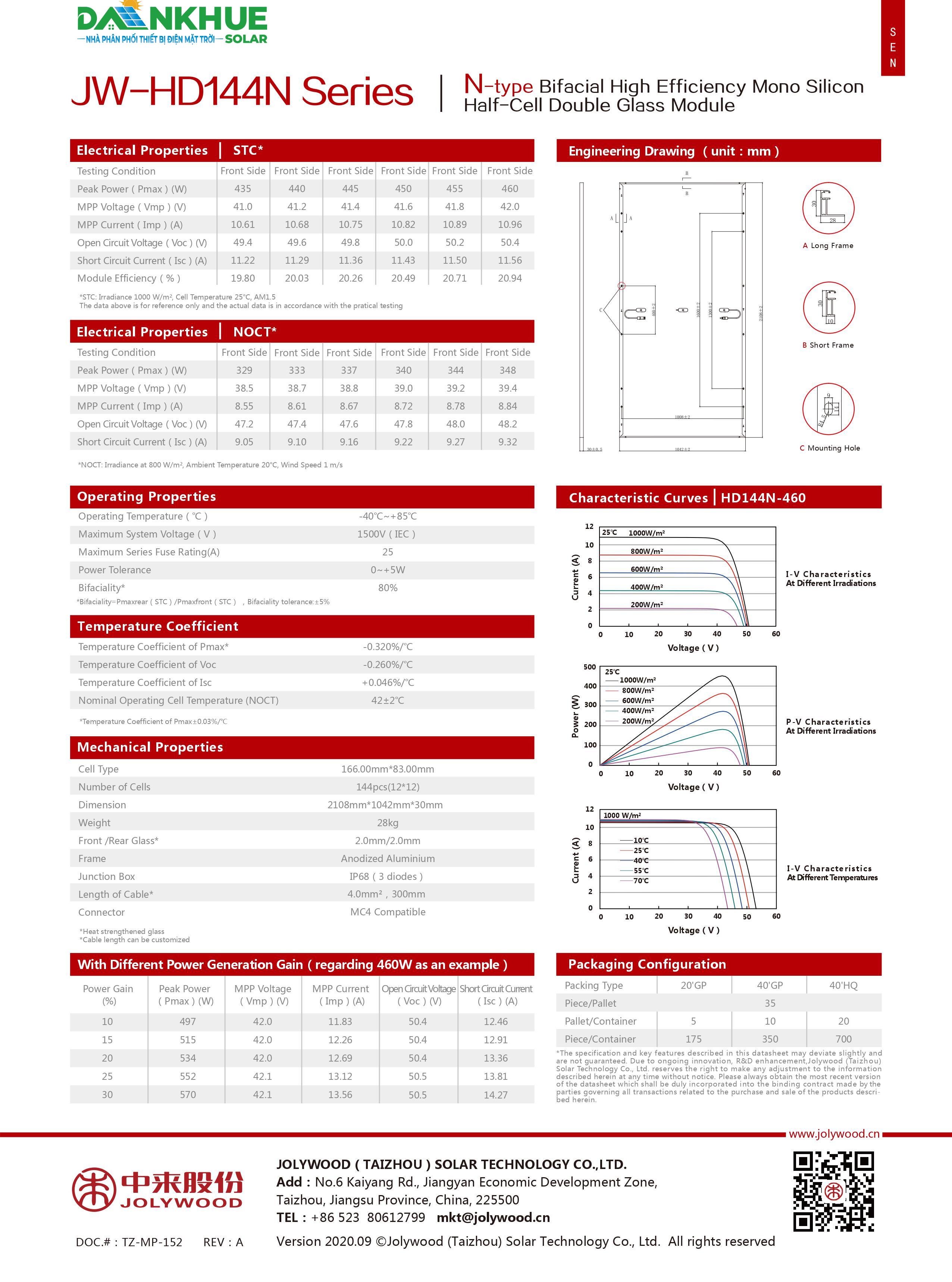 Tấm pin năng lượng mặt trời Jolywood JW-HD144N 460W không chỉ là một sản phẩm mà còn là một biểu tượng cho sự tiên phong trong công nghệ năng lượng sạch.